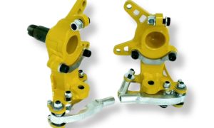 The angle kit is based on the suspension conversion from BMW E36, it requires the use of wheel hubs,