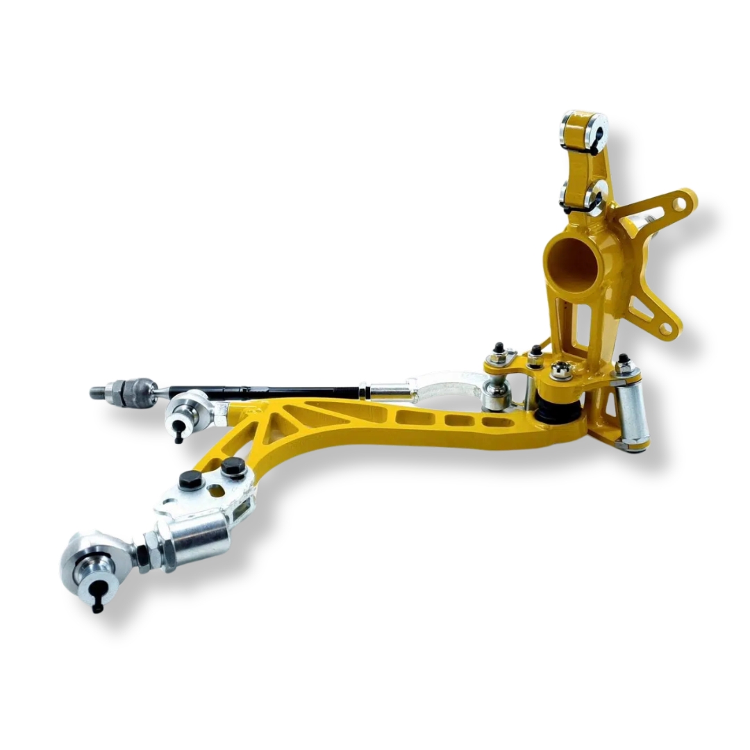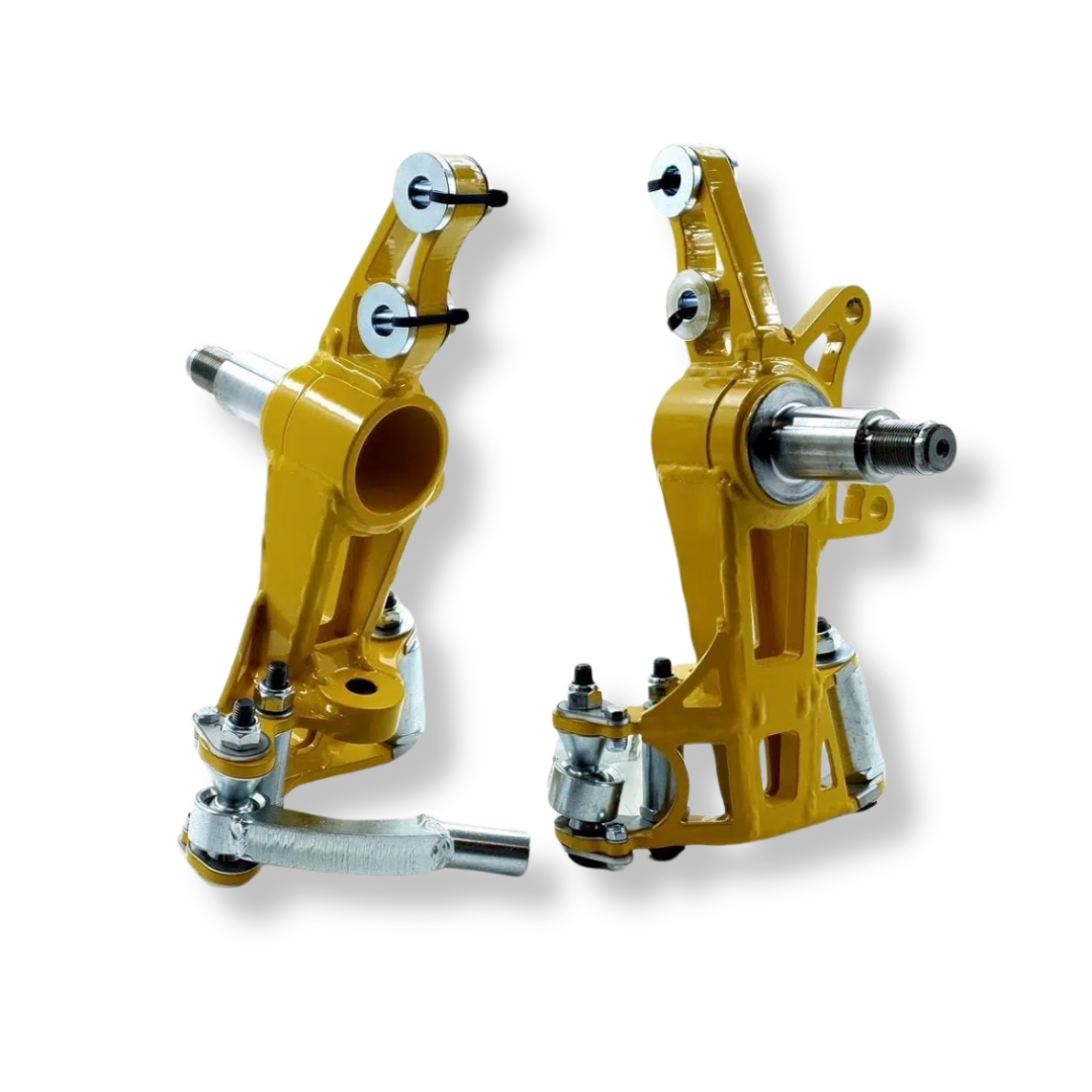 Zwrotnice są dostarczane z tulejami montażowymi do śrub M12 i M14 dla coiloverów. Elementy te są łatwo wymienialne i nie wymagają dodatkowych narzędzi.