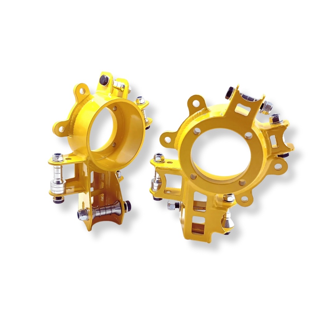 Zwrotnice pozwalają na regulację geometrii ramion toe oraz dolnych ramion napinających (traction rods) pod obciążeniem.