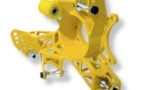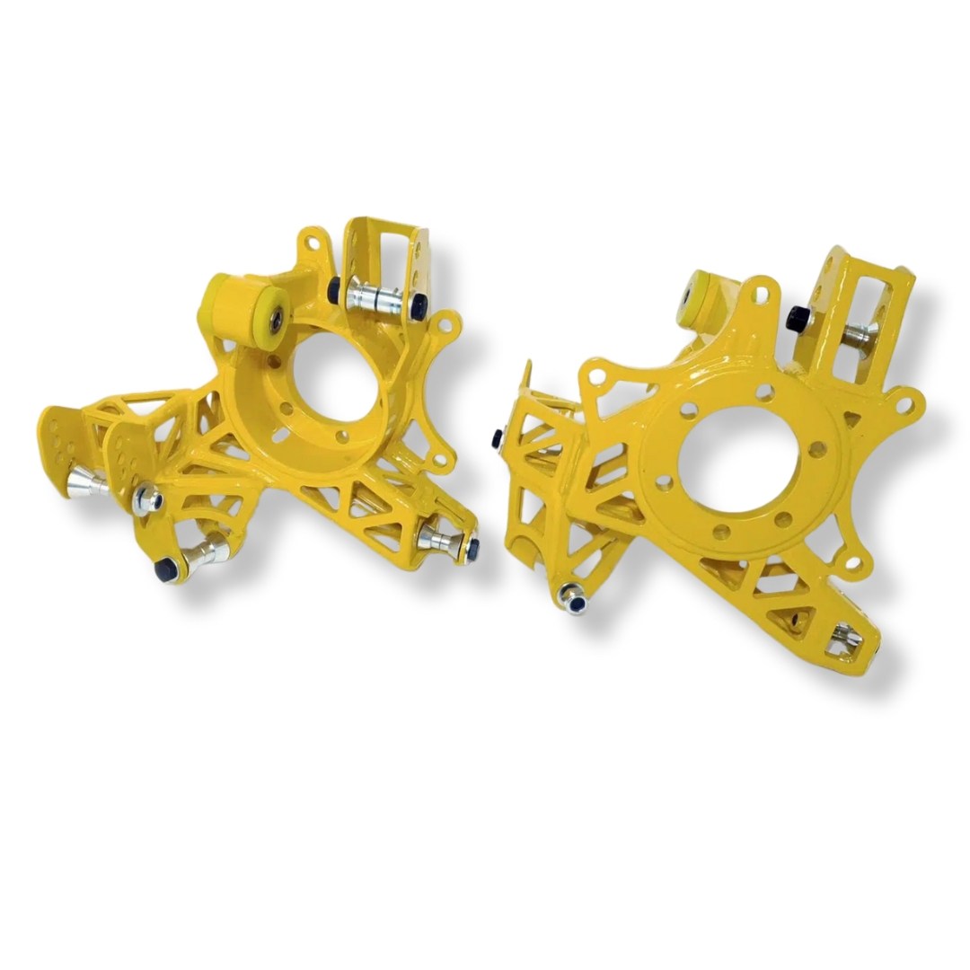 Uchwyty hamulców są wykonane pod dwa zaciski na stronę, przeznaczone dla seryjnych hamulców z modelu 350Z.