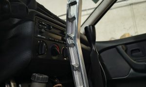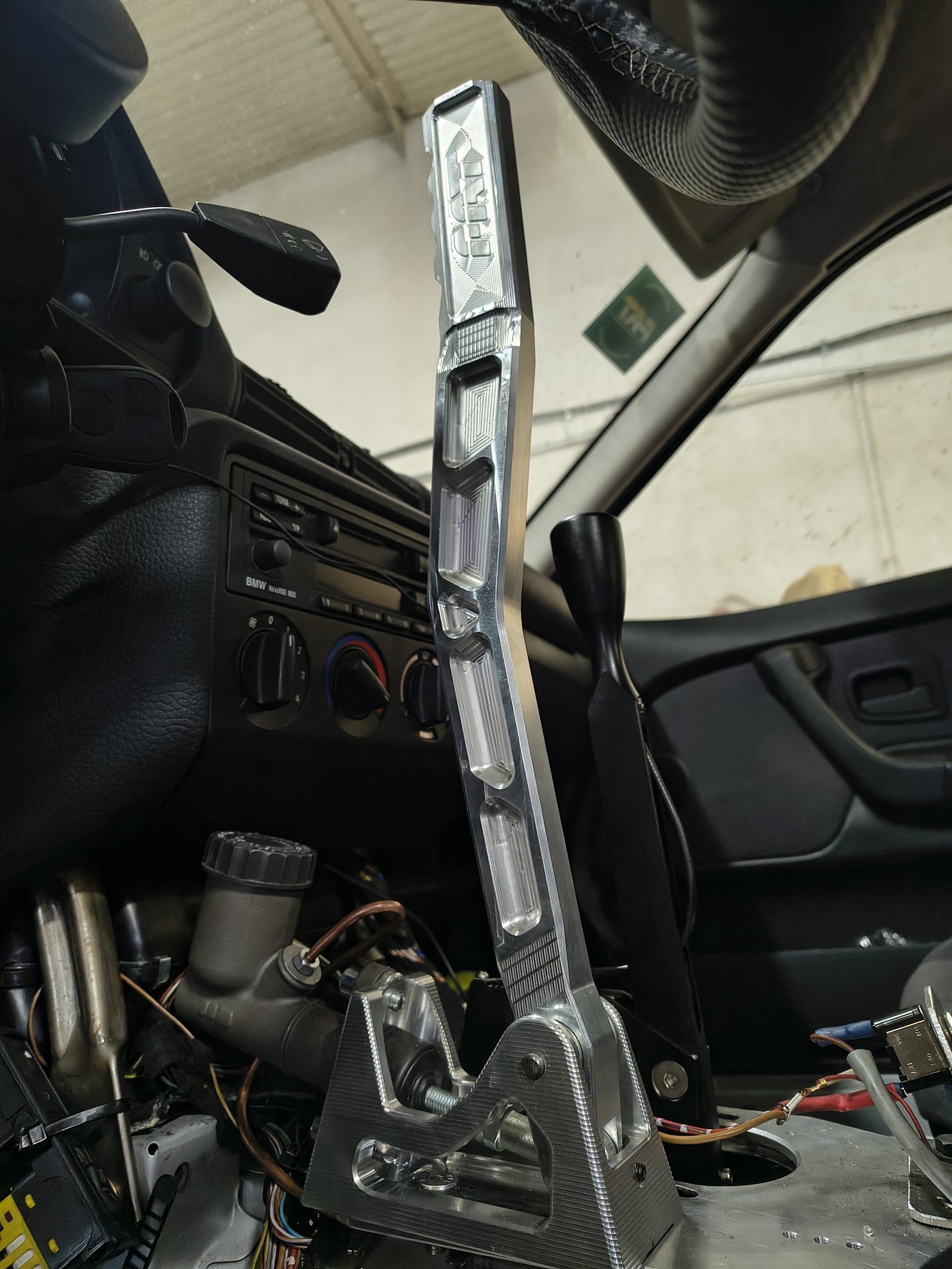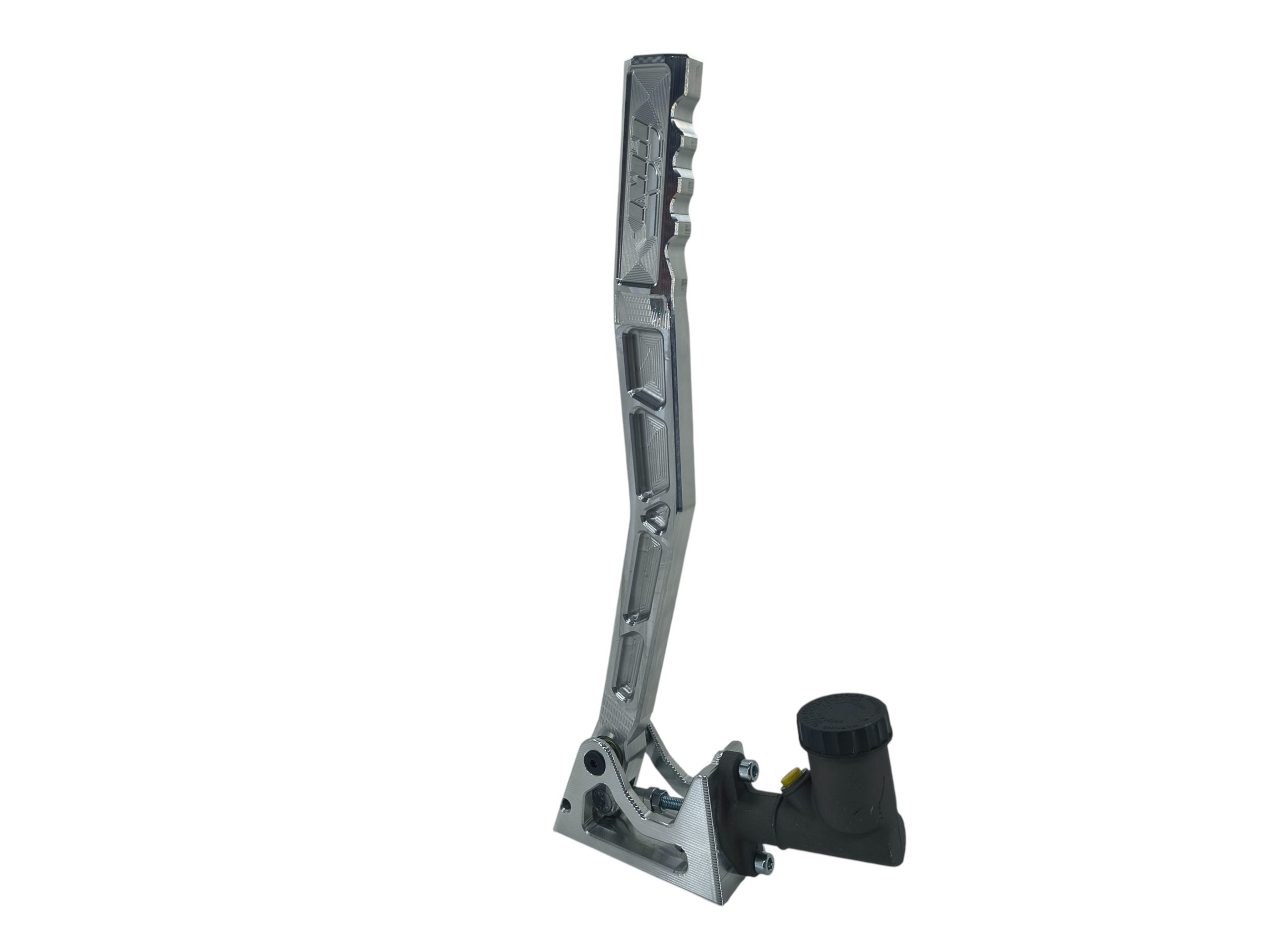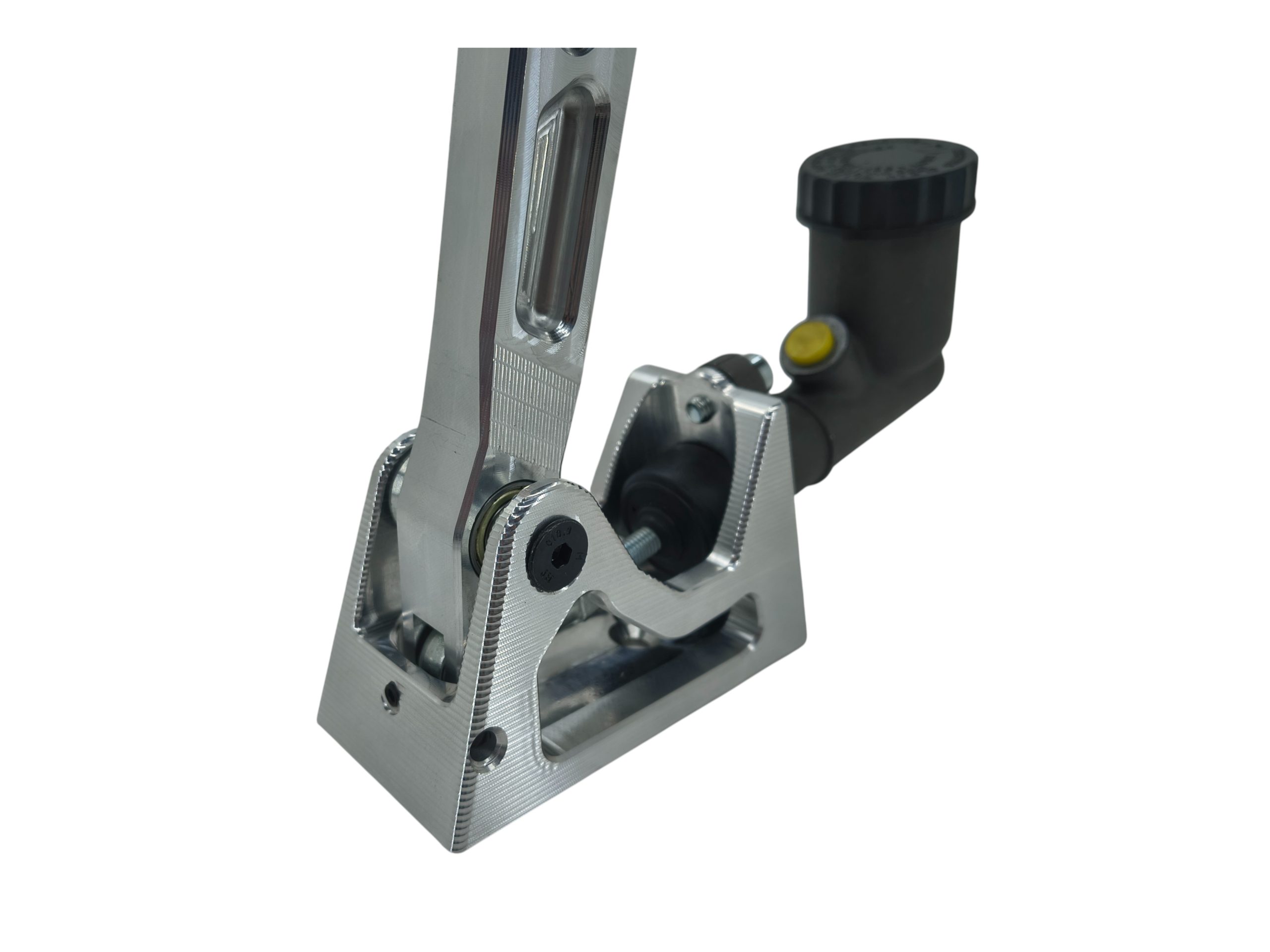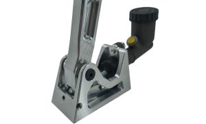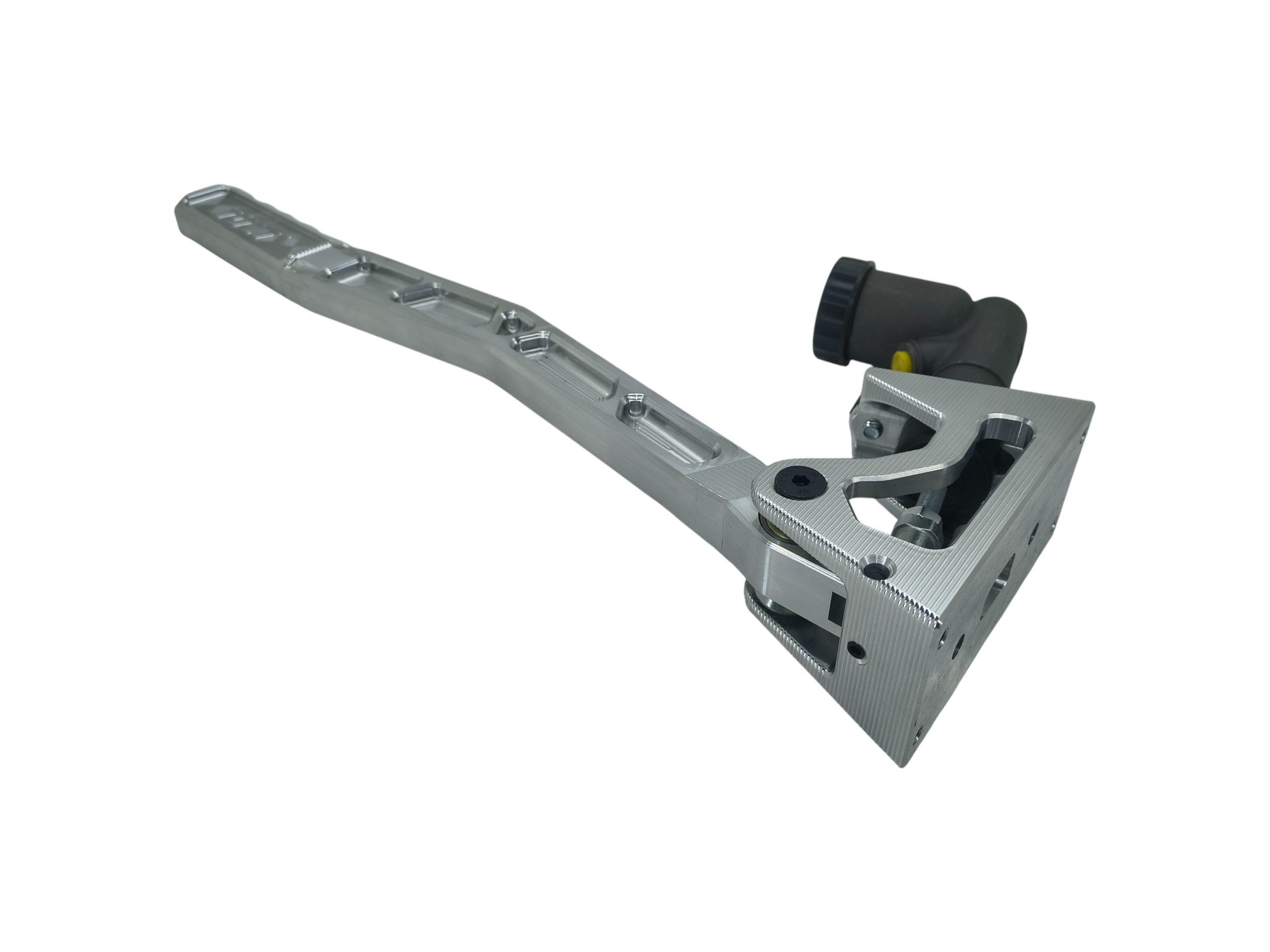 - Reverse hydraulic handbrake with a forward-facing master cylinder